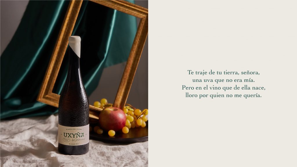 Uxyña es el resultado de un relato íntimo transformado en identidad visual, en estrategia y en una marca con alma propia. Un vino con raíces gallegas, corazón valenciano y destino internacional: viajar hasta Estados Unidos.